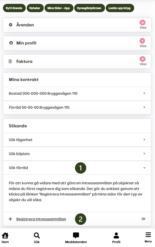 2- Tryck på Registrera intresseanmälan